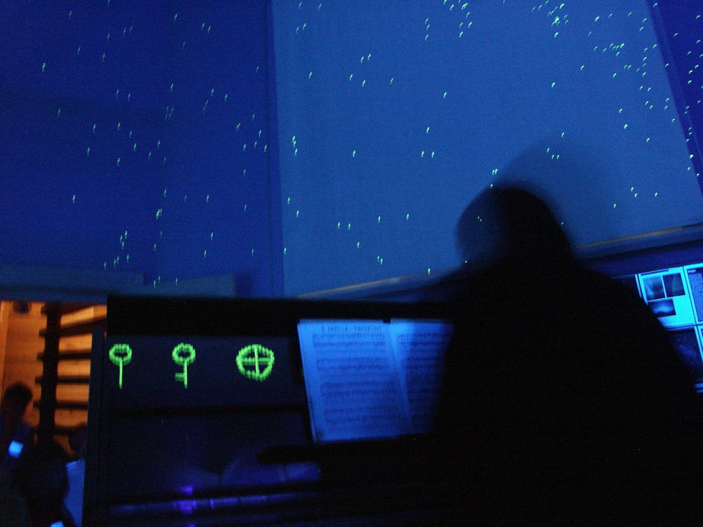 One evening there was a curious concert of music for trumpet or electric guitar with organ – all the instruments were played from high up in the organ loft. The programme also included a piece by renowned Estonian composer Urmas Sisask who was also present in the organ loft and played drum and didgeridoo.