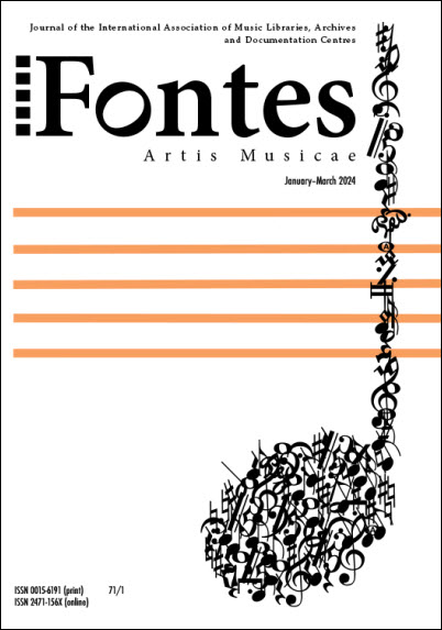 The latest issue of Fontes artis musicae, Volume 71, no. 1 (January-March 2024) has been published. It may be accessed via Project Muse for subscribers or via the IAML website for members. The contents of the issue are as follows: