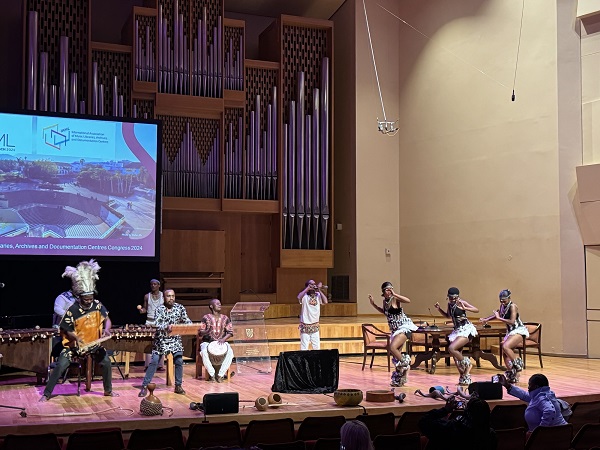 This was the first of many highlights of a truly exhilarating week, which will live long in the memory. It was clear that this Congress would be special from the whoops of joy that punctuated the Opening Ceremony, conveying the excitement we all felt about IAML finally meeting on the African continent for the first time. Nobody present could possibly forget the irresistible energy generated by Professor Dizu Plaatjies and his band of musicians and dancers, with an introduction to traditional African music that prompted much dancing in the aisles by the end. The local organisers also treated us to an eclectic array of evening concerts, encompassing the jazz guitarist Louis Mhlanga with friends, a 1921 silent film (The Four Horsemen of the Apocalypse) with improvised organ accompaniment by Zorada Temmingh, and an illuminating evening of chamber music by South African composers.